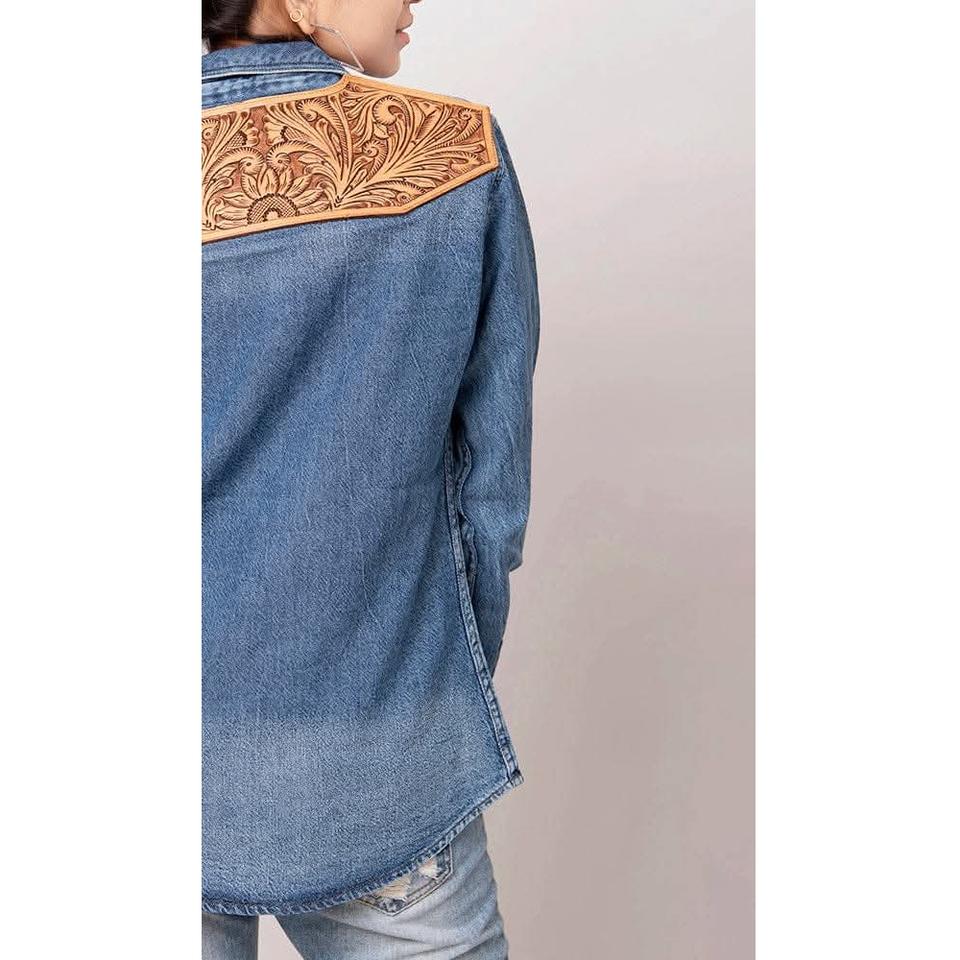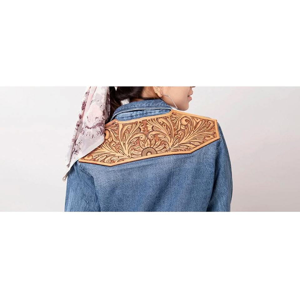 เสื้อยีนส์สีฟ้าอ่อนลายดอกไม้สไตล์วินเทจวินเทจแผ่นหนังกลับผ้าสักหลาดอ่อนขนาดพิเศษระบายอากาศได้ดี