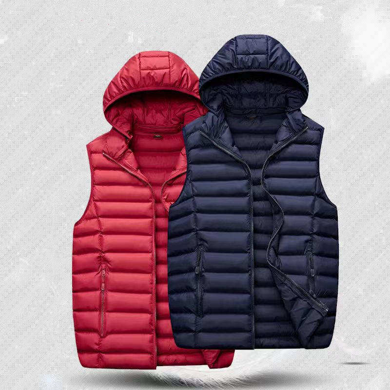 แจ็คเก็ตแขนกุดสีพื้นสำหรับผู้ชาย,เสื้อกันหนาวมีฮู้ดสำหรับอุ่นในฤดูหนาวแบบตะวันตกบุผ้าสองชั้น