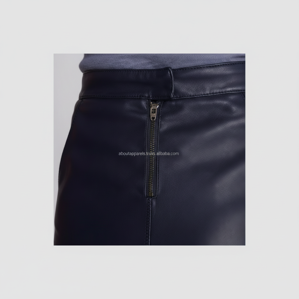 กระโปรงสั้นหนังเทียมสีดำแบบไม่สมมาตรมีซิปตัดหนังแกะรัดรูปแฟชั่นสำหรับขนาดใหญ่พิเศษ
