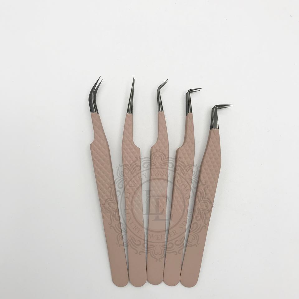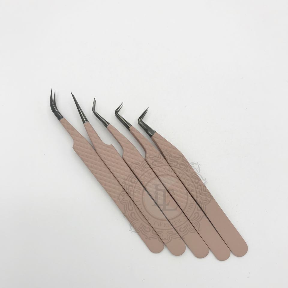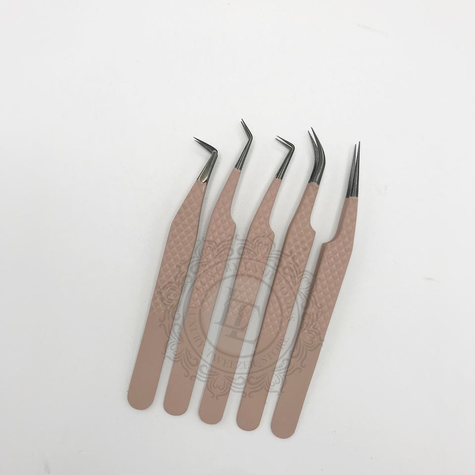 ชุดแหนบปลายขนตาสแตนเลสสีดำล้วนชุดแหนบปลายพลาสมาสีน้ำตาลด้าน