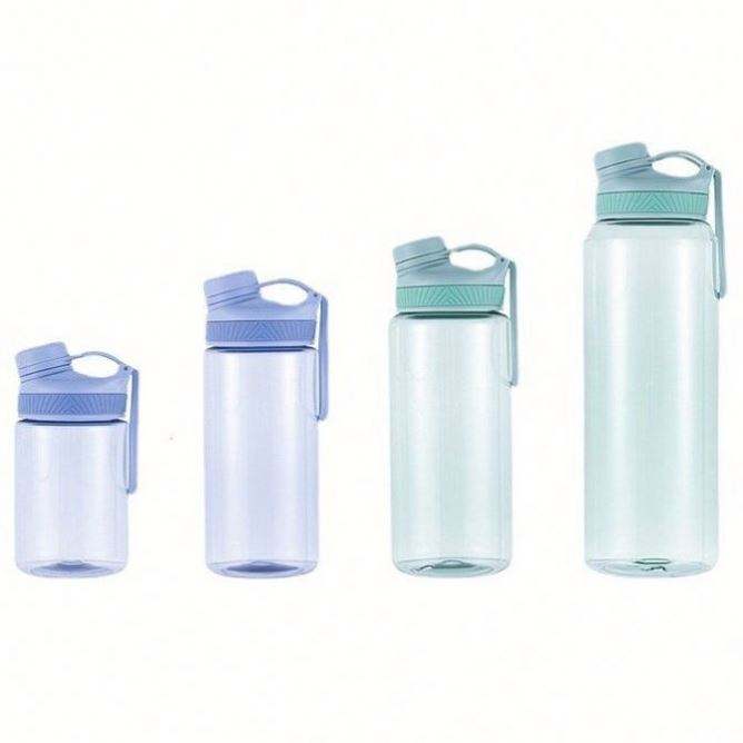 ขวดน้ำพลาสติกใสสำหรับกีฬากลางแจ้ง ขายดี พร้อมหูหิ้วและฝาปิดแบบกด สามารถสกรีนโลโก้ได้ พร้อมเครื่องปิดฝาแบบแมนนวล