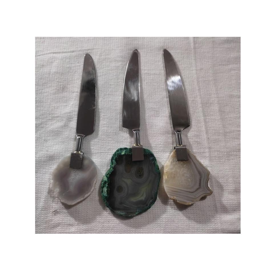 ชุดมีดเสิร์ฟเค้กสแตนเลสพร้อมด้ามอาเกตสีเงินสำหรับใช้ในบ้านชุดเครื่องมือทำเค้กไม่ซ้ำใคร