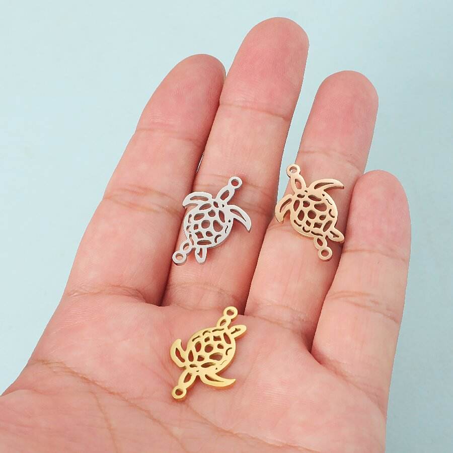 จี้ห้อยคอรูปเต่าสแตนเลสสองชั้นสำหรับสร้อยคอแบบ DIY เครื่องประดับแฟชั่นรูปสัตว์เต่า