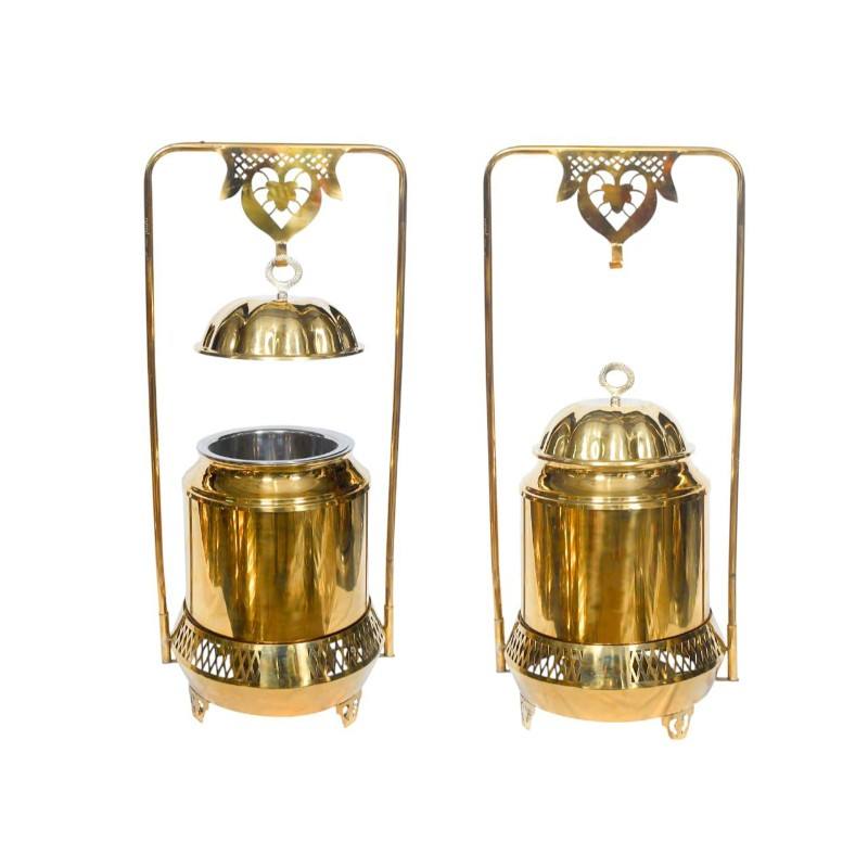 หม้ออุ่นอาหารสแตนเลสทรงกลมพร้อมขาตั้งและฝาปิด แบบตกแต่ง ขัดเงา ขายดี เหมาะสำหรับโรงแรมและบ้าน