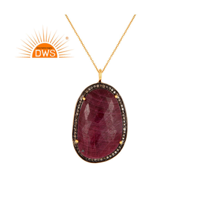 สร้อยคอจี้อัญมณีและทับทิมธรรมชาติชุบทอง18K สำหรับผู้ผลิตเครื่องประดับอัญมณี
