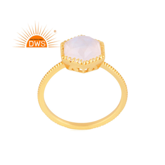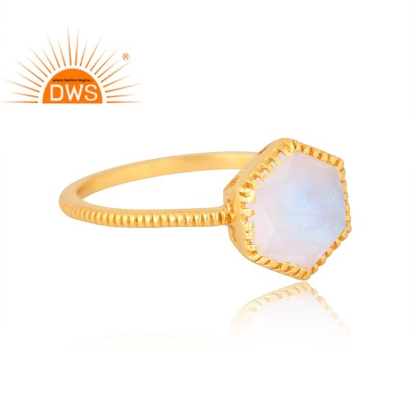 แหวนเงินแท้18K ชุบทองธรรมชาติสีรุ้งดวงจันทร์อัญมณีหินสีวางซ้อนกันได้เครื่องประดับแบบละเอียด