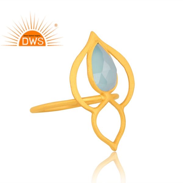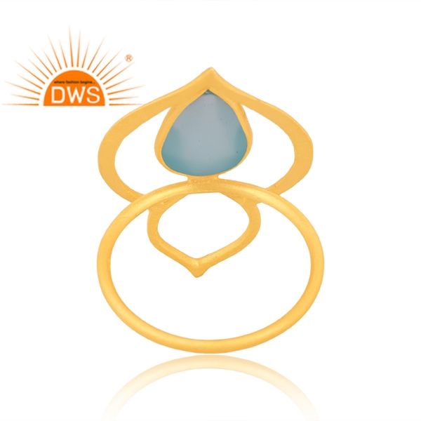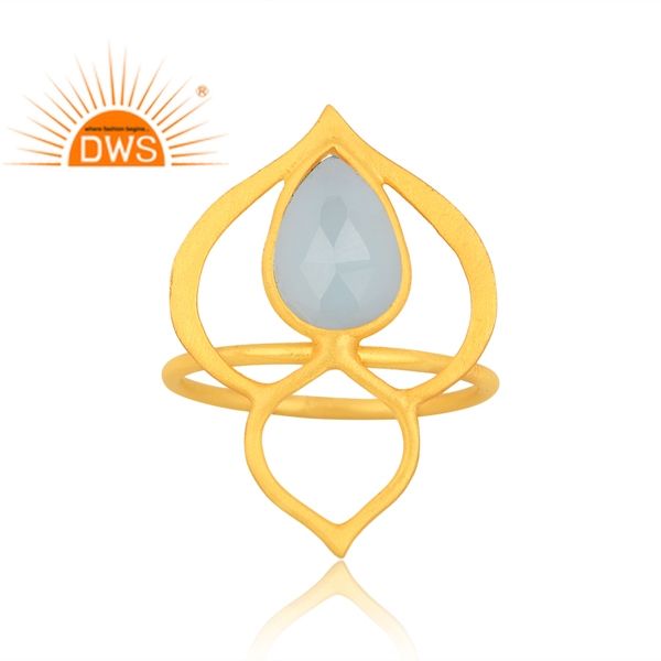 แหวนพลอยคาลซิโดนีธรรมชาติชุบทอง18K ชุบทองแหวนวางซ้อนกันได้ดีอัญมณี