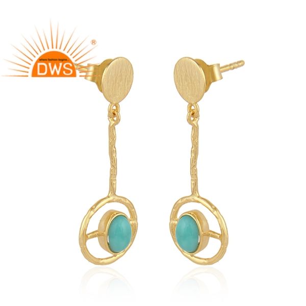 ต่างหูเงินแท้ 925 ชุบทอง 18K ประดับด้วยพลอยเทอร์ควอยซ์ธรรมชาติจากแอริโซนา ต่างหูแบบห้อย ผลิตโดยผู้ผลิตเครื่องประดับชั้นดี