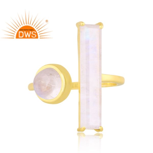 แหวนเงินแท้18K ชุบทองธรรมชาติสีรุ้งดวงจันทร์หินอัญมณีปรับได้ราคาถูก