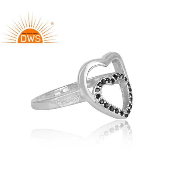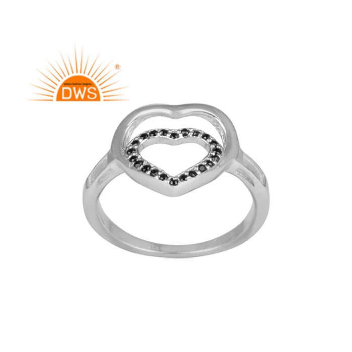 แหวนพลอยธรรมชาติสีดำรูปหัวใจดีไซน์รูปหัวใจทำจากเงินสเตอร์ลิงผู้ผลิตเครื่องประดับตามสั่ง