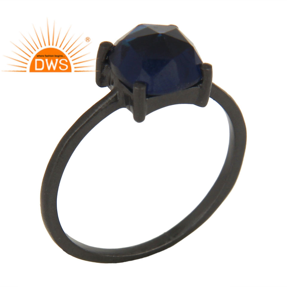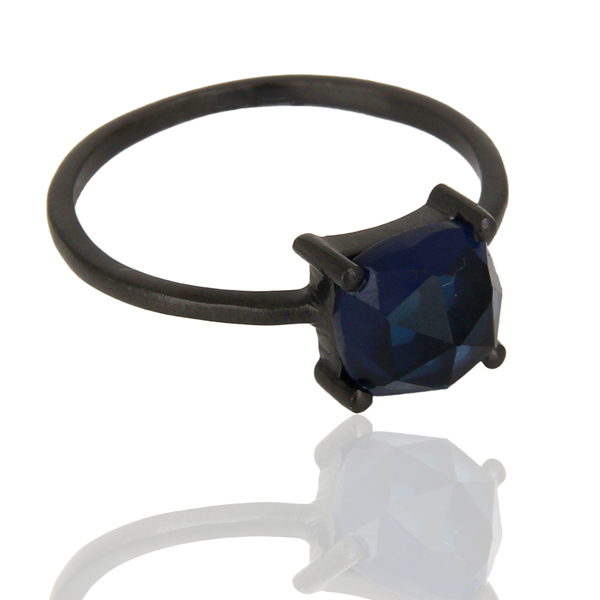 แหวนพลอยคอรันดัมสีฟ้าธรรมชาติสีเงินสเตอริงแหวนวางซ้อนกันได้เครื่องประดับที่กำหนดเองสำหรับผู้หญิงของขวัญสำหรับเธอ