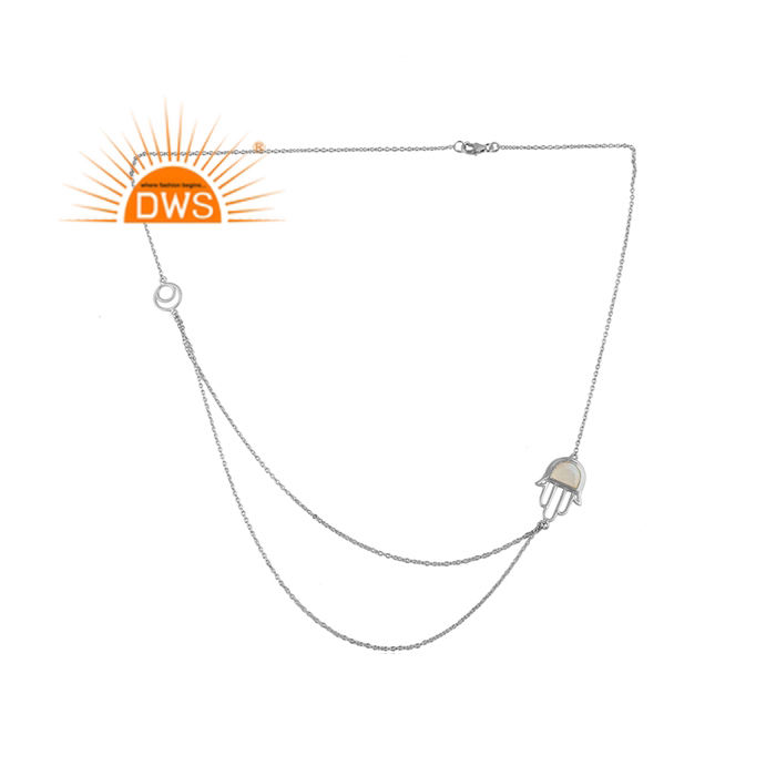 สร้อยคอโซ่คู่จี้พลอยมูนสโตนสีรุ้งธรรมชาติสำหรับเป็นของขวัญสำหรับผู้หญิง