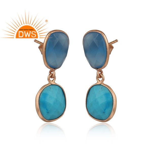 ต่างหูหินควอยซ์ชุบทองโรสเตอร์สีฟ้า