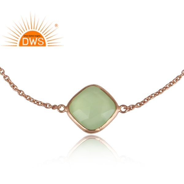 สร้อยข้อมือหินพลอยคาลซิโดนีชุบสีโรสโกลด์ธรรมชาติชุบด้วยเงินสเตอร์ลิงสำหรับเป็นของขวัญสำหรับผู้หญิง