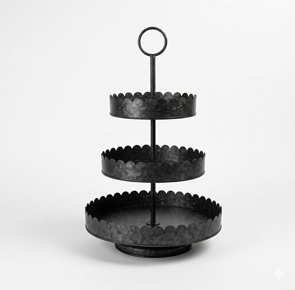ถาดเสิร์ฟโลหะชุบสังกะสี 3 ชั้น ดีไซน์ทันสมัย ขายดี ทนทาน เหมาะสำหรับวางคัพเค้ก ขนมหวาน ใช้ในครัวและงานอีเว้นท์ต่างๆ