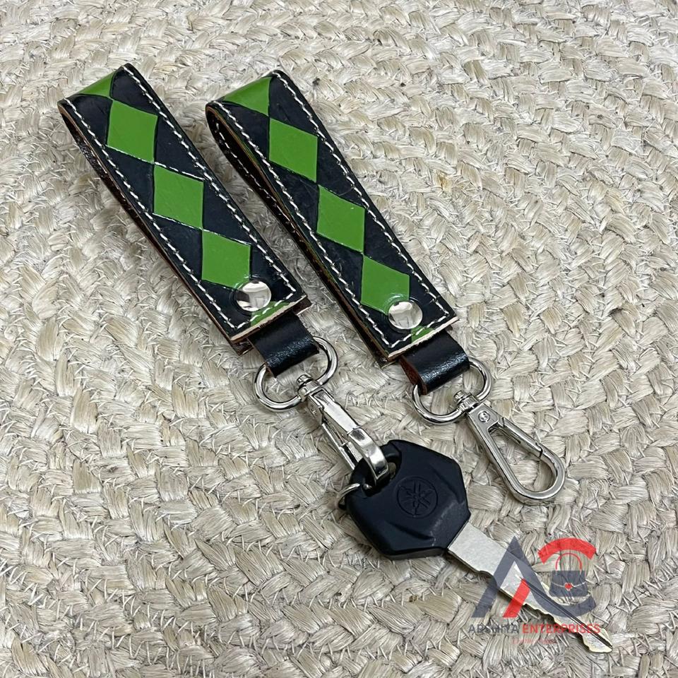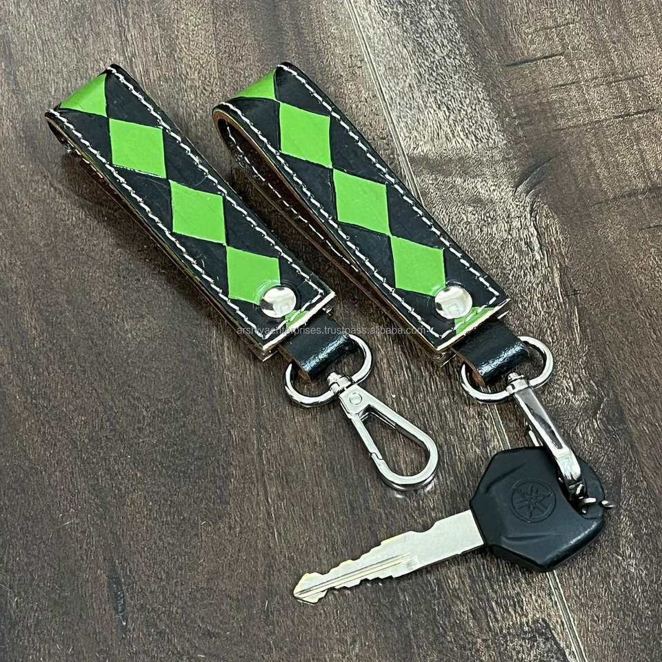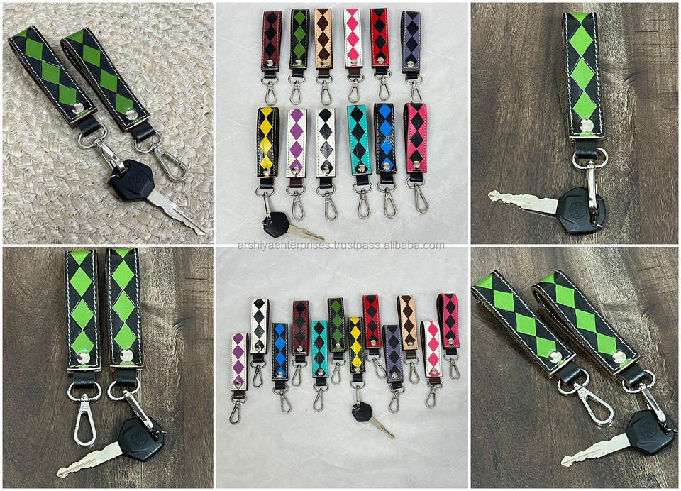 พวงกุญแจหนังวัวแท้ลายตาราง ดีไซน์ทันสมัย งานแฮนด์เมด ขายดี เหมาะสำหรับของขวัญองค์กรและของแจกส่งเสริมการขาย
