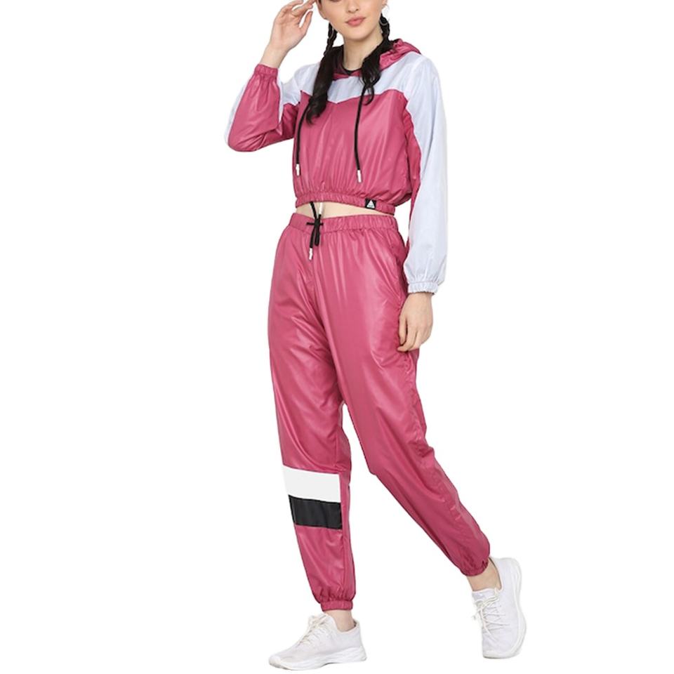 ชุดออกกำลังกาย 2 ชิ้น เสื้อครอปแขนยาวมีฮู้ดผ้ากำมะหยี่กันน้ำ ทรงเข้ารูป ลายมัดย้อม ติดกระดุม สำหรับผู้หญิง ขายดี มีสไตล์