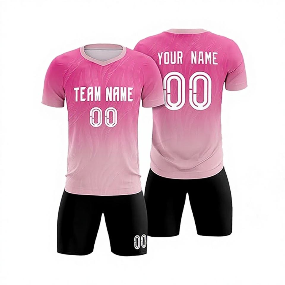 Hot Selling Heat-Transfer Printed Customized Football Jersey Soccer Wear Set with Short Sleeves 100% Polyester Custom Team Name
