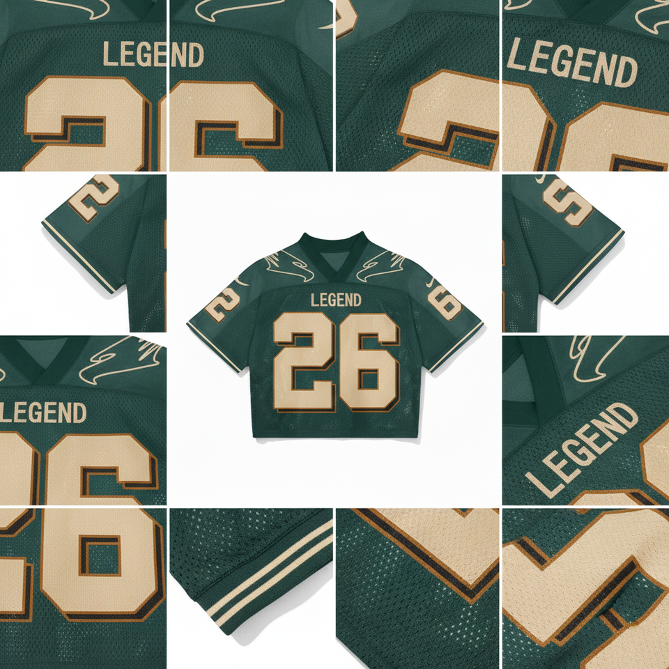 ตำแหน่งโลโก้:ด้านหน้า, ด้านหลัง, แขนเสื้อด้านซ้าย, แขนเสื้อด้านขวา, ขอบล่าง, หลังคอ