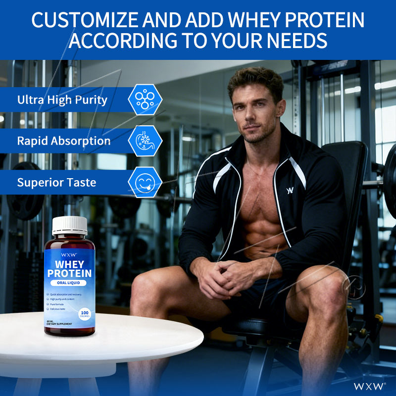 เวย์โปรตีนอาหารเสริมเหลวปราศจากน้ำตาลสูตรอร่อยสำหรับสุขภาพของกล้ามเนื้อ