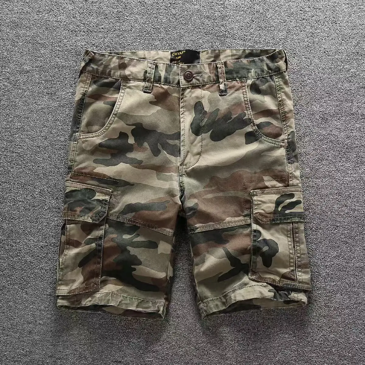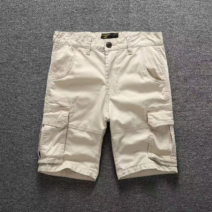 ชุดครอปของผู้ชายสำหรับฤดูร้อนกางเกงขาสั้นคาร์โก้พิมพ์โลโก้แห้งเร็วผ้าแคนวาสสีพื้นย้อมสีลำลองกลางแจ้ง