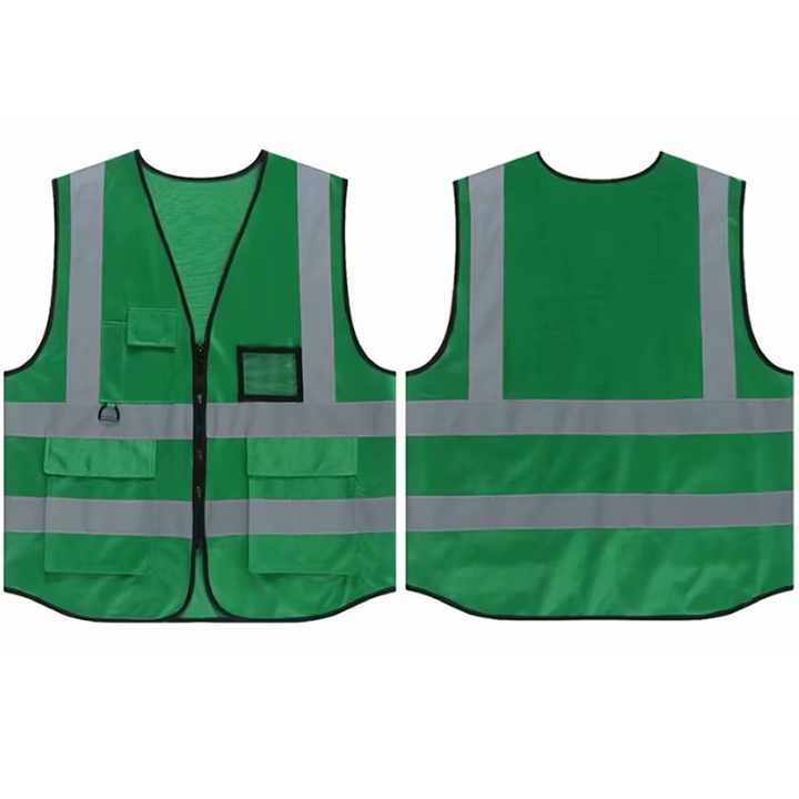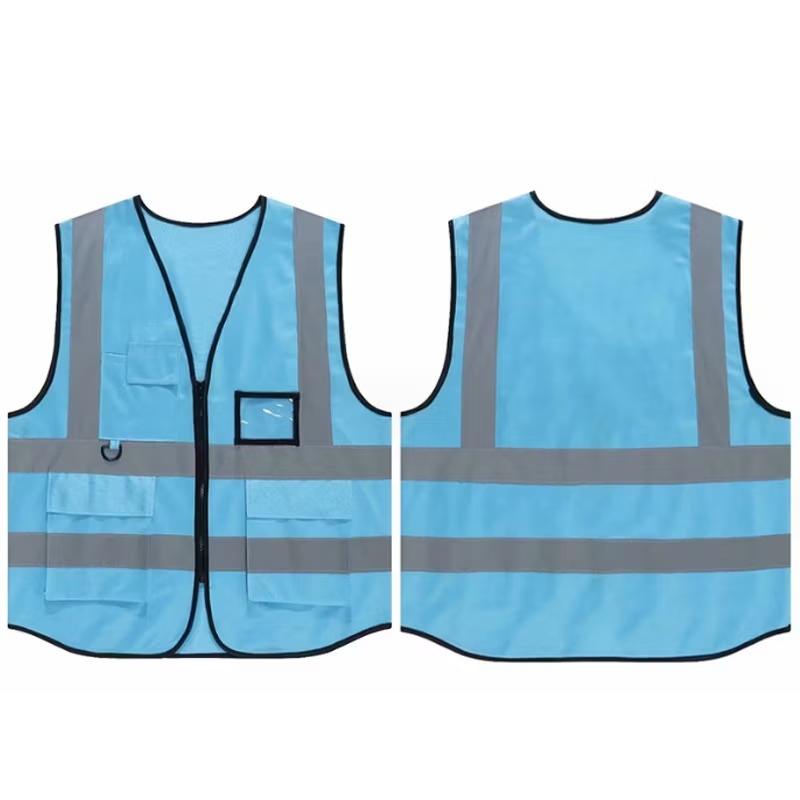 เสื้อกั๊กสะท้อนแสงสำหรับผู้ชายไซส์พิเศษโลโก้แบบมีกระเป๋าสะท้อนแสง