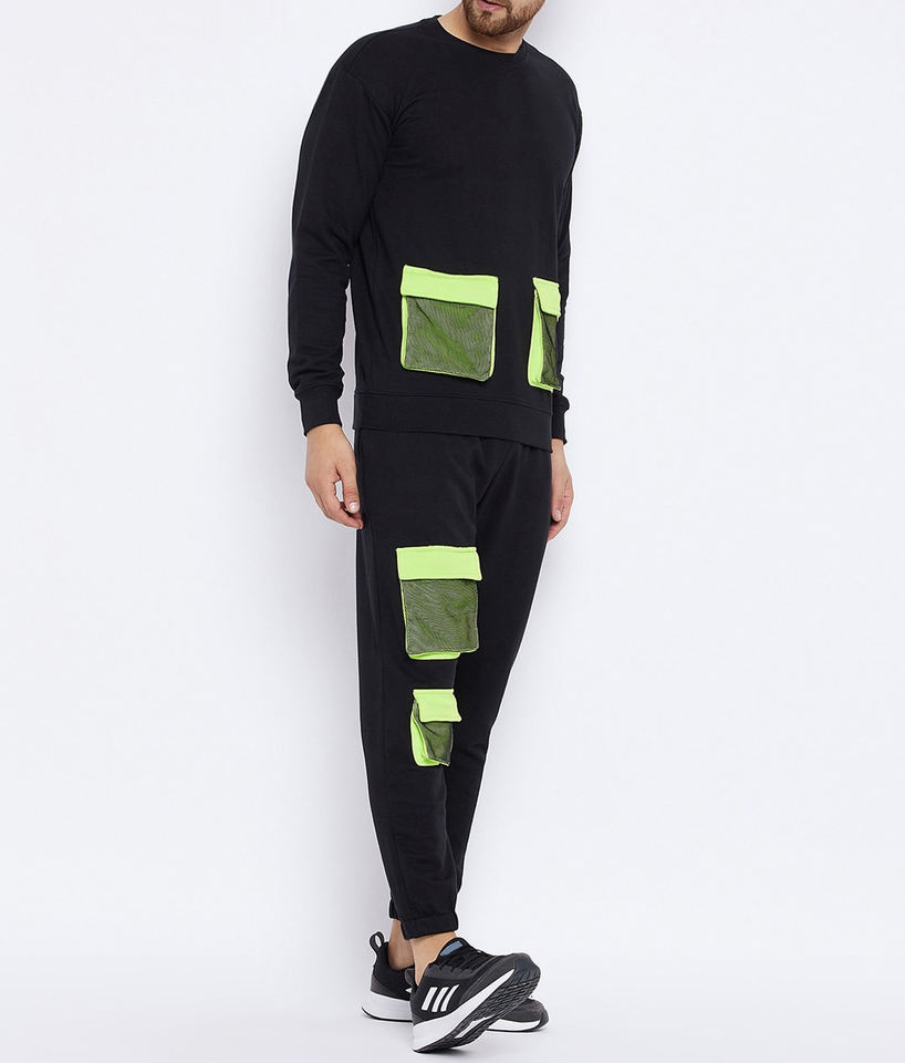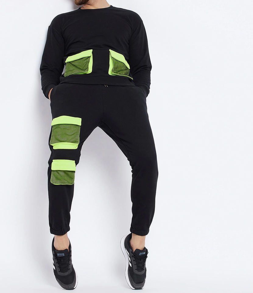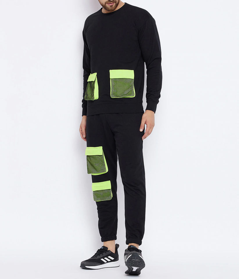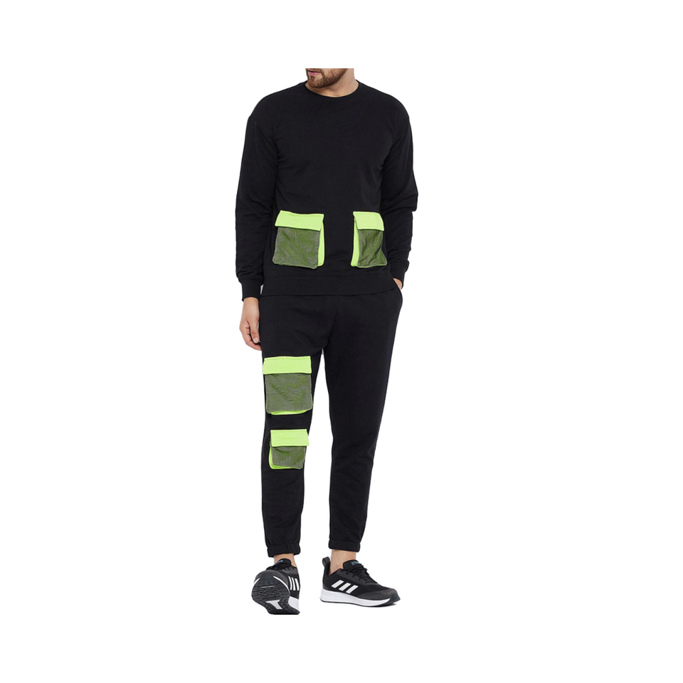 ชุดวอร์มกางเกงขาบานและเสื้อวอร์มคอกลมแบบเรียงซ้อนกางเกงวิ่งแบบมีฮู้ดสำหรับผู้ชาย