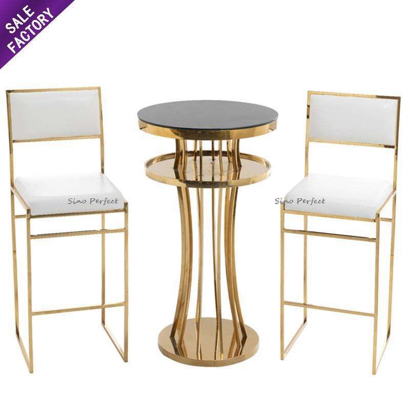ชุดโต๊ะบาร์และเก้าอี้บาร์สูง โครงเหล็กดัด ขายดี ราคาถูก สีทองขาว