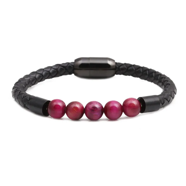 กำไลข้อมือหนังตาเสือสำหรับผู้ชายกำไลข้อมือหนังหินธรรมชาติสีดำ