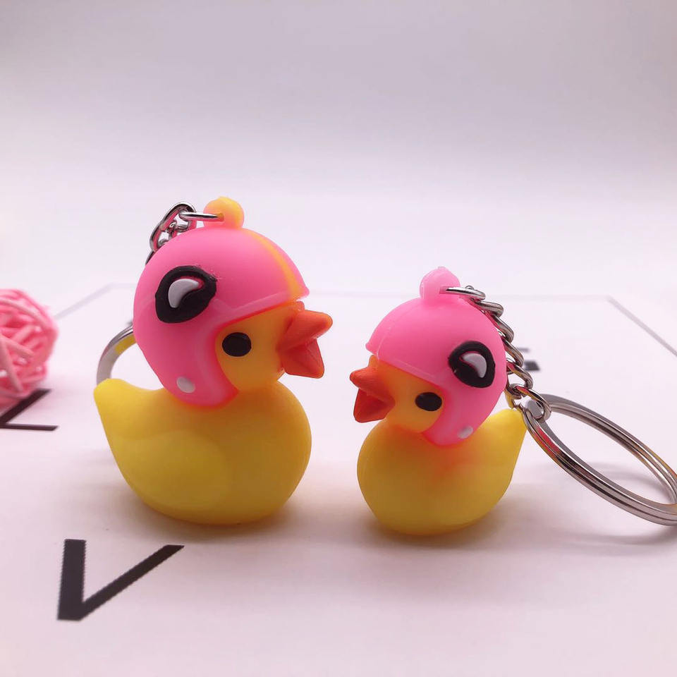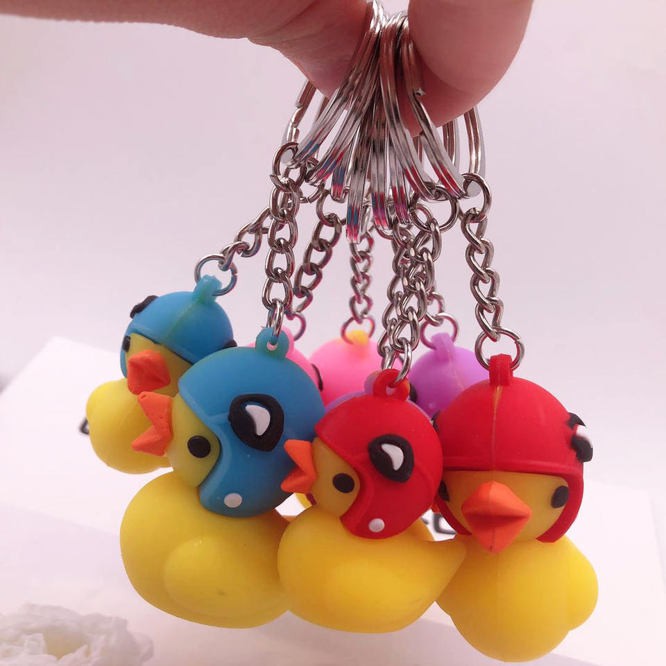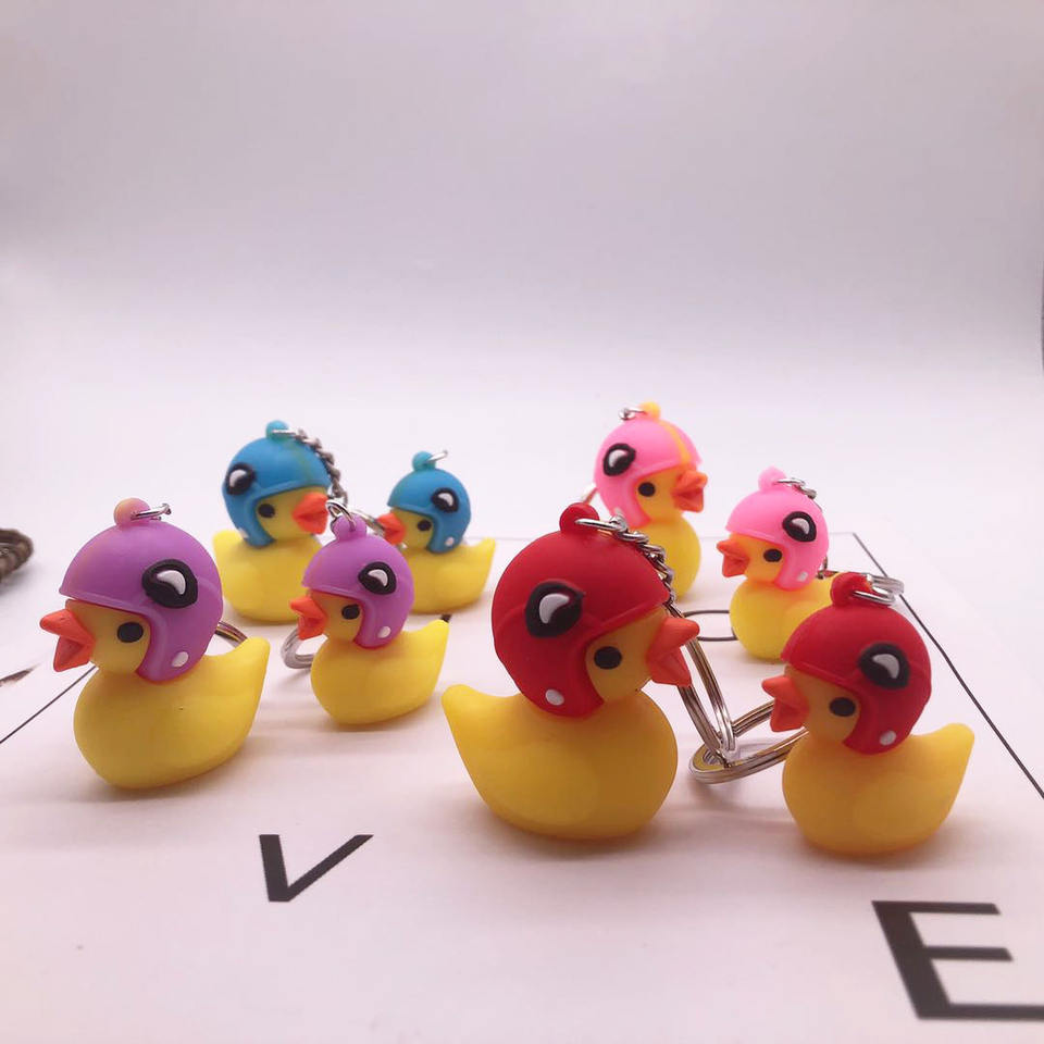 ขายดีหมวกกันน็อค TikTok แบบป๊อปอัพขนาดเล็กรูปเป็ดสีเหลืองกระเป๋าพวงกุญแจรถยนต์โทรศัพท์มือถือของขวัญที่เป็นโลโก้และ OEM