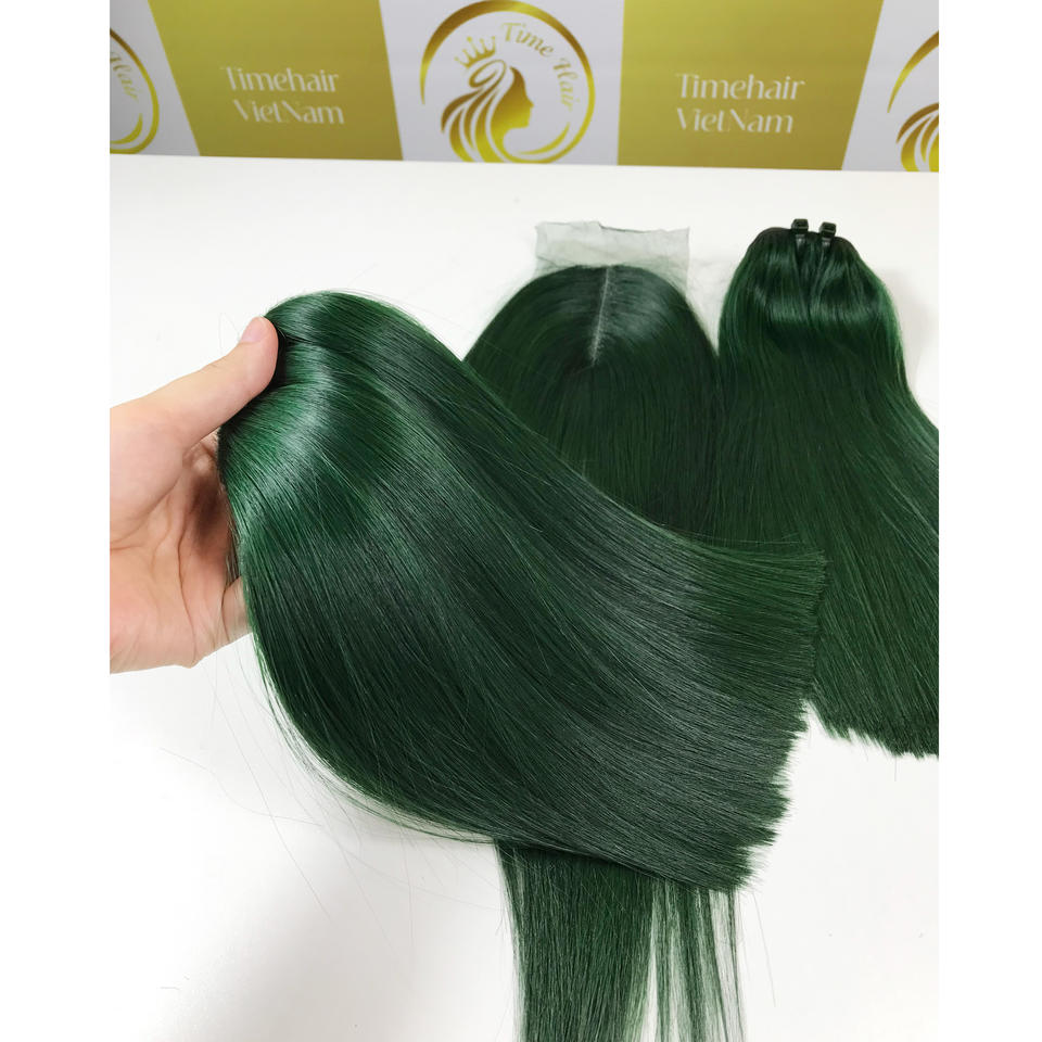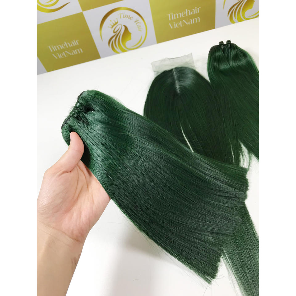 ผมต่อแท้เวียดนามสีเขียวคุณภาพสูง เรมี่ เกรดพรีเมียม แบบเย็บสองชั้น ความยาว 10 นิ้ว ขายดีมาก