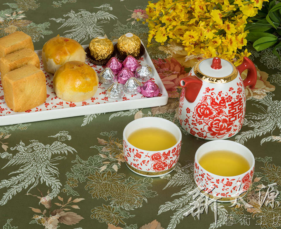 ชุดของขวัญแต่งงานแบบจีนโบราณสุดหรู ขายดี มาใหม่ ชุดกาน้ำชาเซรามิกคู่ความสุขสองเท่า พร้อมถ้วยและถาด ชินไทหยวน