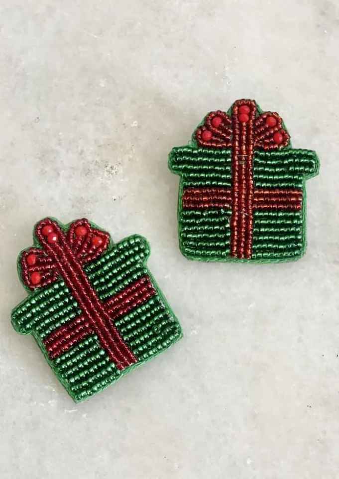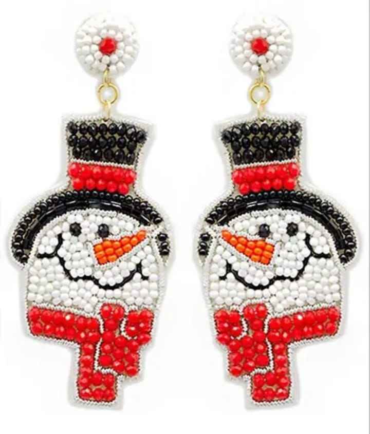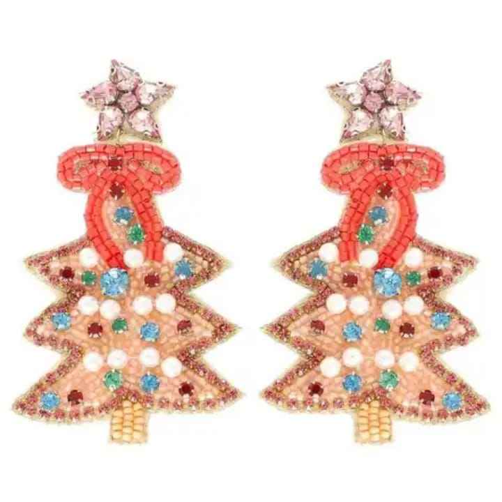 Hot Selling Trendy Handwork Embroidery Seed Beaded Drop Santa Earrings Wedding Christmas Parties Gifting Ear Accessories Hoop