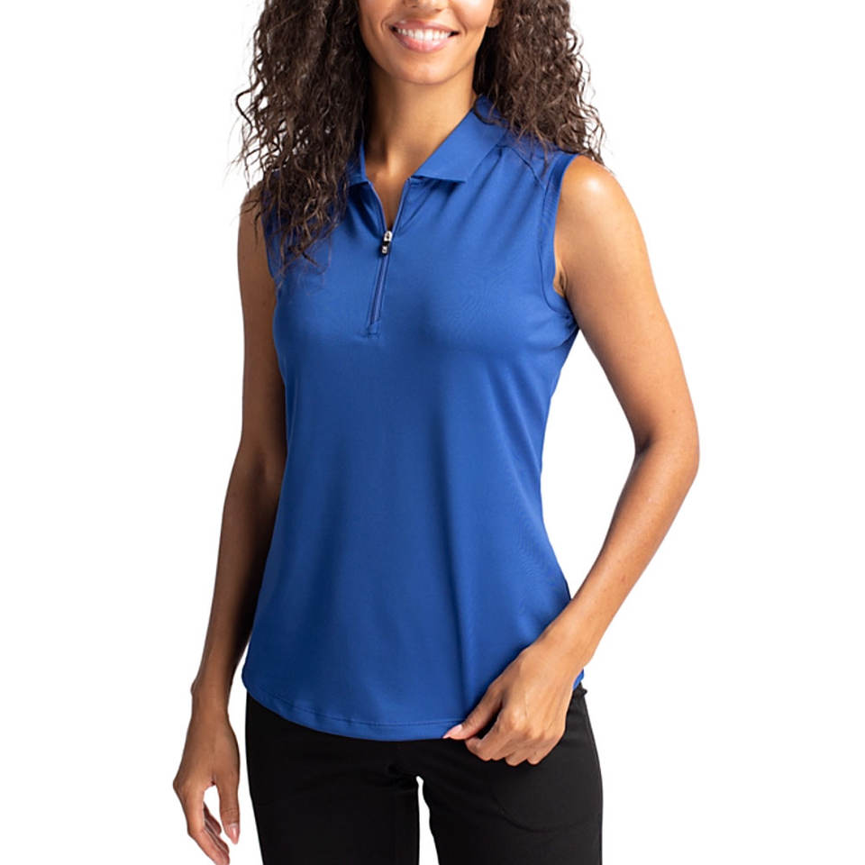 เสื้อยืดโปโลมีซิปแขนกุดสำหรับผู้หญิงเสื้อยืดโปโลมีซิปแขนกุด