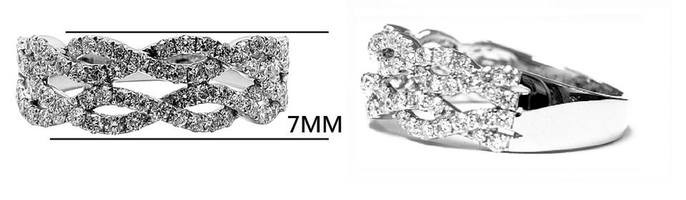 ขายดีแหวนแต่งงานบิดเกลียว14K สีทองขาวแท้ประดับเพชรแท้แหวนคู่บิดครึ่งทองสำหรับผู้หญิง
