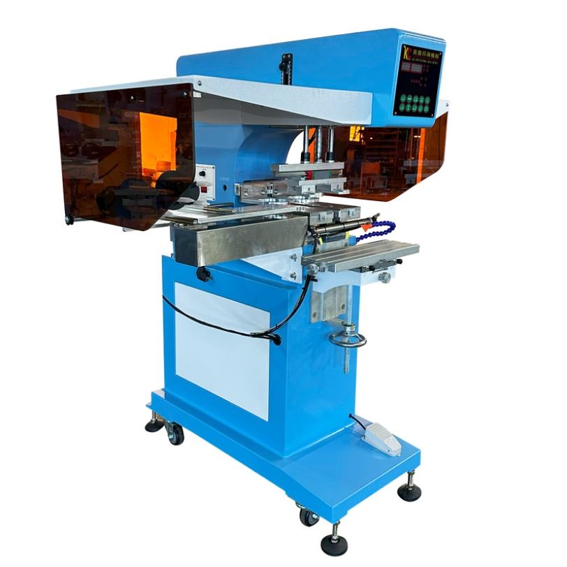 เครื่องพิมพ์แพดแบบถ้วยหมึกสองสีขายดี พร้อมอุปกรณ์ทำความสะอาดแผ่นรองแบบ Shuttle สำหรับพิมพ์ฉลากดูแลเสื้อผ้า