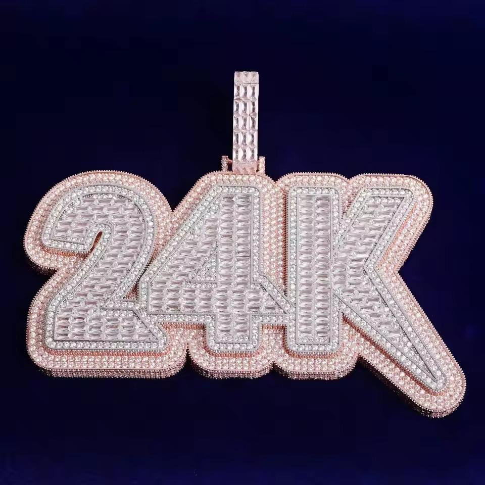จี้เพชรโมอิสซาไนต์ทรงตัวอักษร 24K แบบ unisex ขายดี ประดับเพชรเต็มตัว ดีไซน์ใหม่ทันสมัย เครื่องประดับเงินแท้ ตกแต่งด้วยทองคำ รับรองโดย GRA