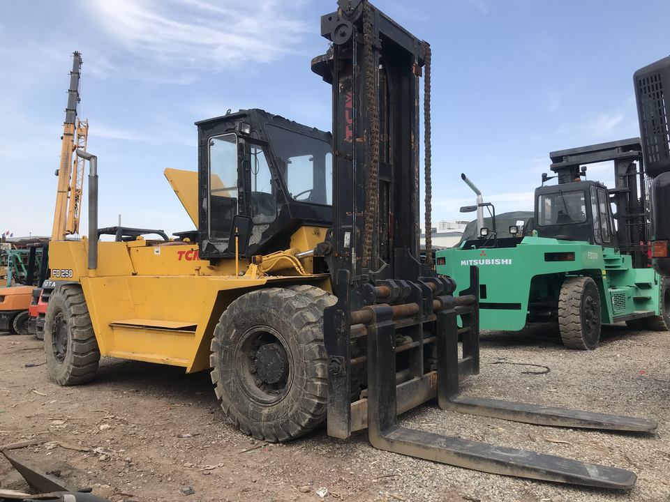 รถยกดีเซลมือสอง TCM FD250 25ตันจากญี่ปุ่นส่วนประกอบคุณภาพสูงพร้อมปั๊มเครื่องยนต์เกียร์