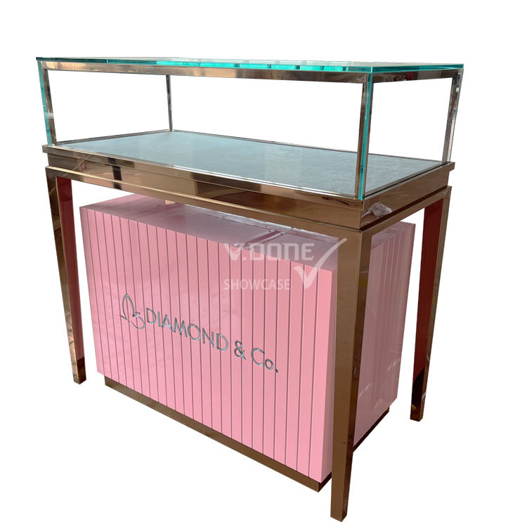 Hot Selling V-DONE JW-034 Elegant Stainless Steel LED Illuminated Glass Display Case Showcase Retail Jewellery Shop Interior
