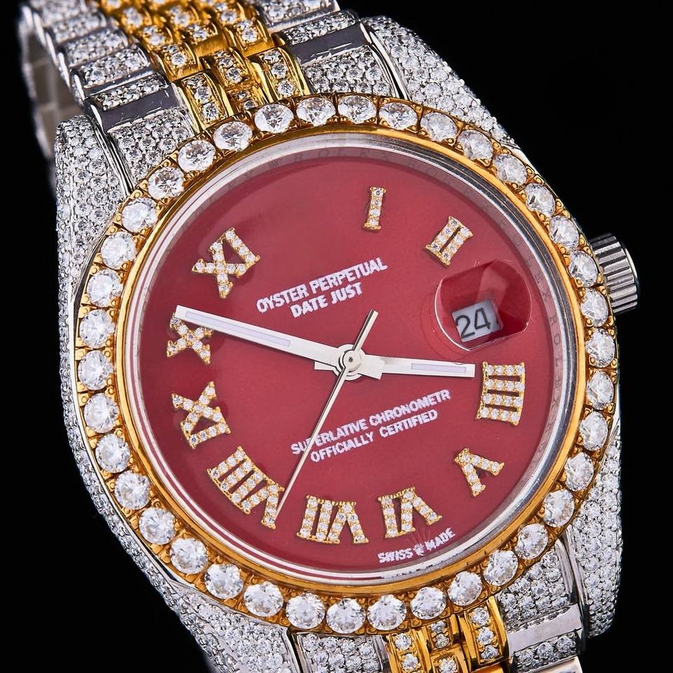 นาฬิกาเพชรโมอิสซาไนต์ VVS ขายดี ระบบออโตเมติกเต็มรูปแบบ ขนาด 41 มม. โทนสีโรสไวท์ ดีไซน์หนามหรูหรา กระจกฝังเพชร กลไกอัตโนมัติ ไข่มุกดำ