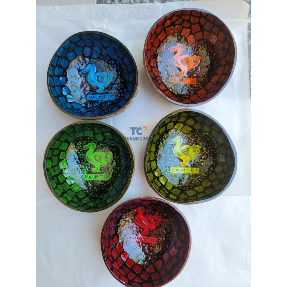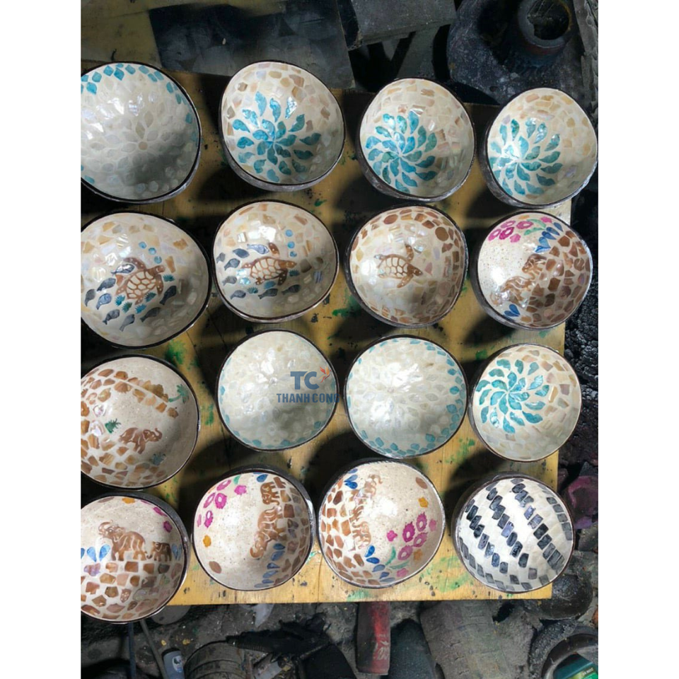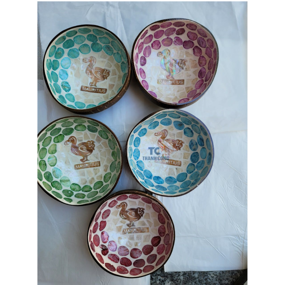 ชามกะลามะพร้าวทำมือแบบเวียดนามเลี่ยมมุกดีไซน์ออกแบบโลโก้ได้ตามต้องการหลากหลายสีสำหรับตกแต่ง