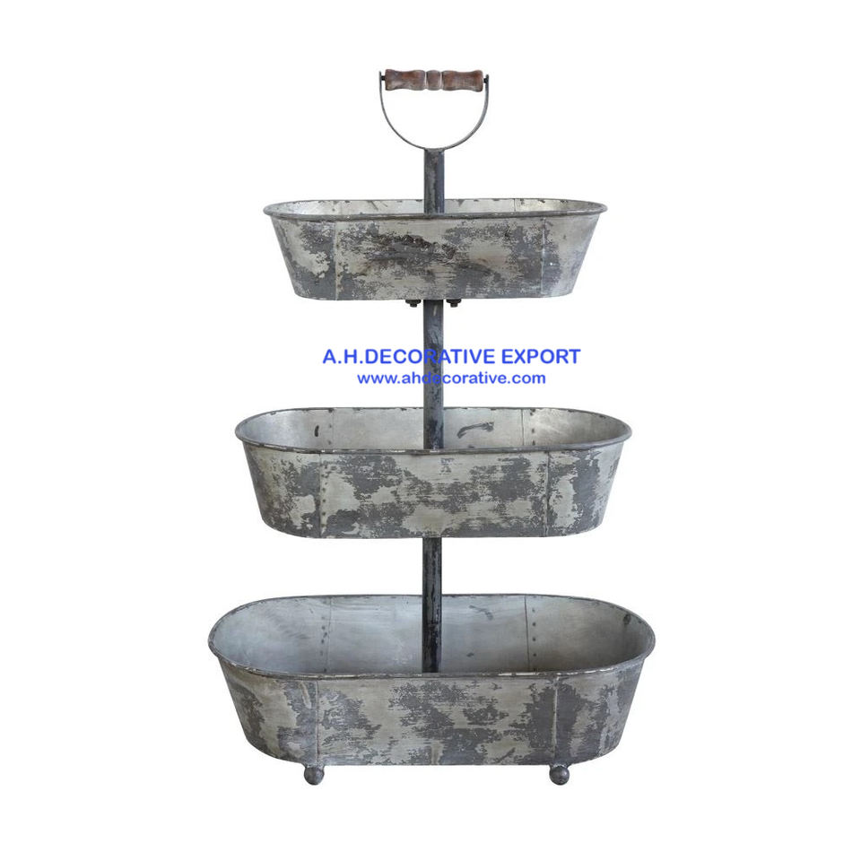 ถาดโลหะชุบสังกะสีสองชั้นทรงสี่เหลี่ยมดีไซน์วินเทจสำหรับจำหน่ายในราคาขายส่ง