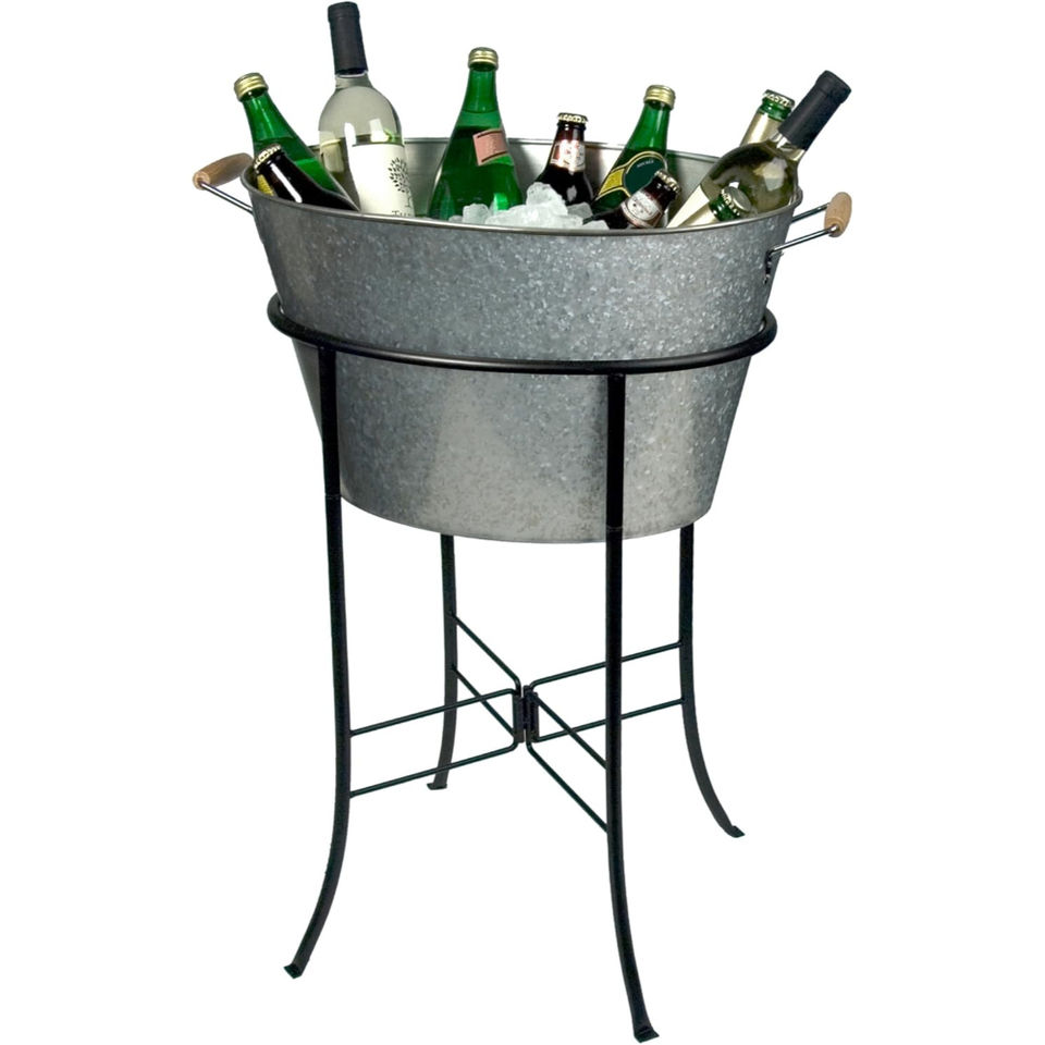 ถังน้ำแข็งโลหะชุบสังกะสีวินเทจขายดี พร้อมหูหิ้ว สำหรับงานปาร์ตี้ งานแต่งงาน อุปกรณ์บาร์ ถังแช่ไวน์ ถังแช่เบียร์