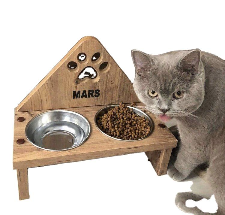 ชามอาหารสัตว์เลี้ยงทำมือจากโลหะและไม้สไตล์วินเทจ ขายดี เป็นมิตรกับสิ่งแวดล้อม เหมาะสำหรับสุนัขและแมว ของขวัญทางธุรกิจ