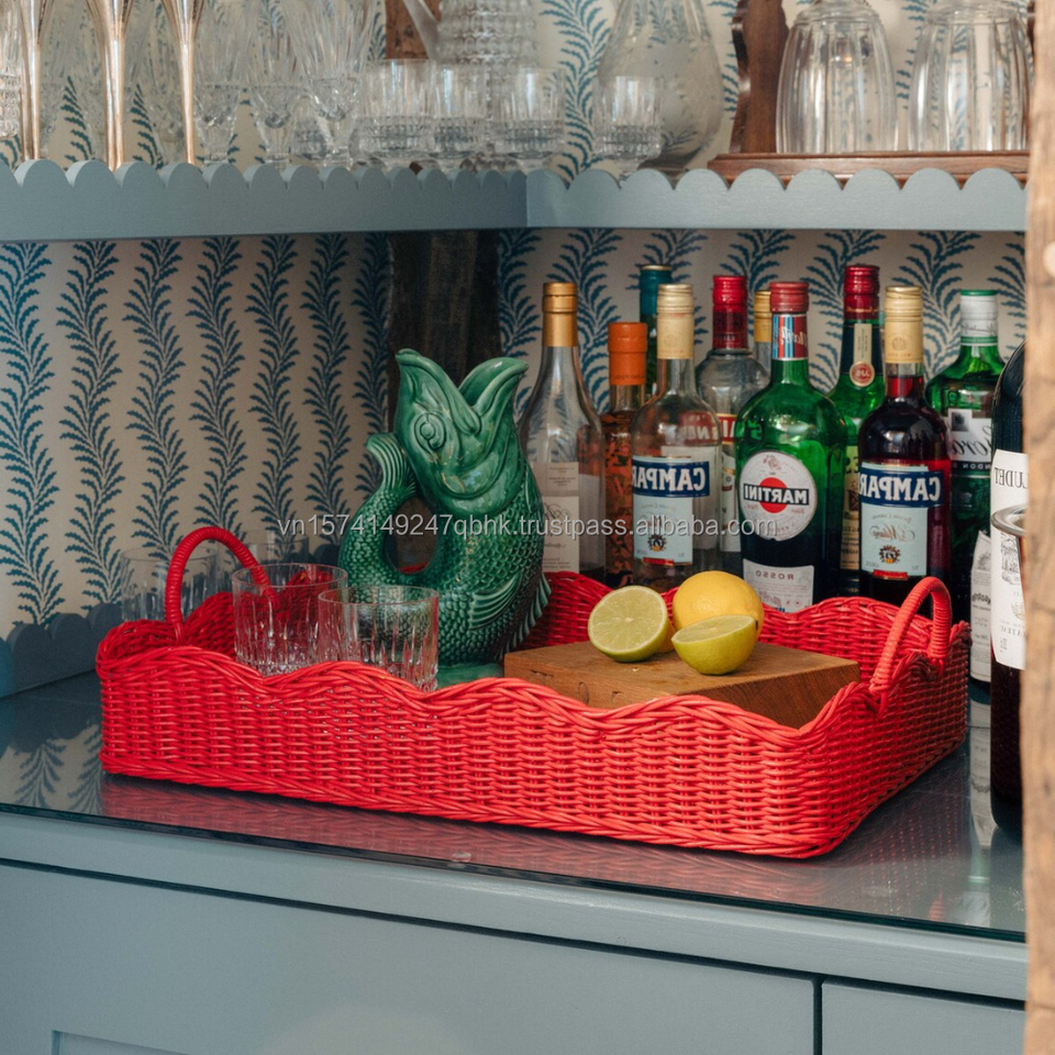 ถาดหวายสไตล์วินเทจหอยเชลล์สำหรับตกแต่งโต๊ะกาแฟแบบพกพาที่ทันสมัยถาดเสิร์ฟหญ้าทะเลสำหรับตกแต่งบ้าน