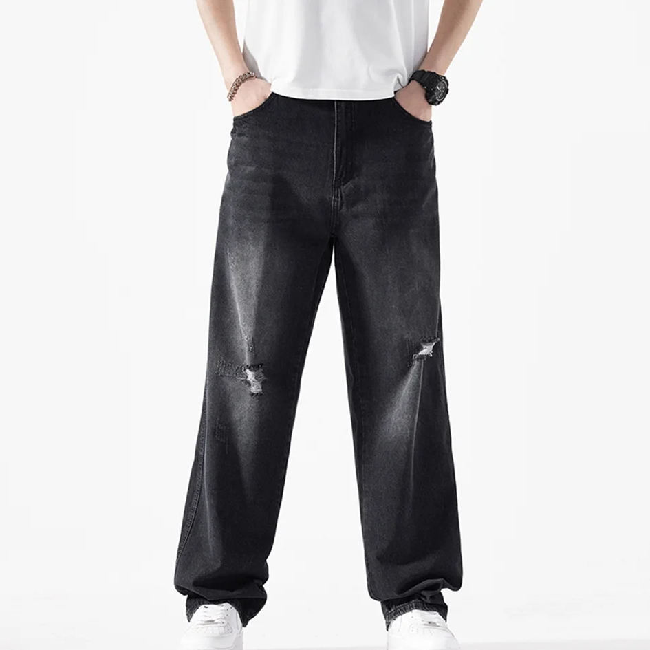 กางเกงยีนส์ผู้ชายสไตล์สตรีทแวร์แนววินเทจแฟชันกางเกงผ้าเดนิมสีน้ำเงินเข้มกางเกงยีนส์ทรงหลวมแบบกำหนดเอง