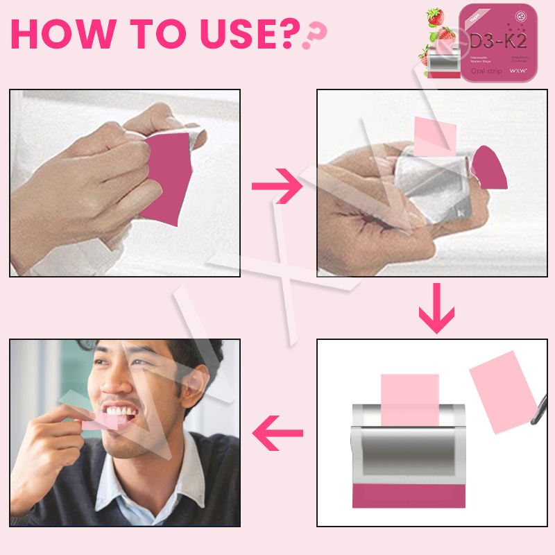 อาหารเสริมวิตามิน D3 + K2ฟิล์มปากเปล่าละลายเร็ว K2 D3วิตามินลูกอมแถบบางสำหรับสนับสนุนพลังงาน
