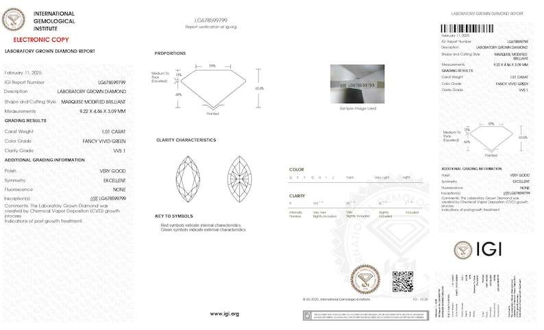 เพชรทรงมาร์ควิสสีเขียวสดใส ขายดี ได้รับการรับรองจาก IGI เพชรเลี้ยงในห้องปฏิบัติการ น้ำหนัก 5.5 กะรัต ความใส VVS เพชรทรงมาร์ควิสแบบหลวม