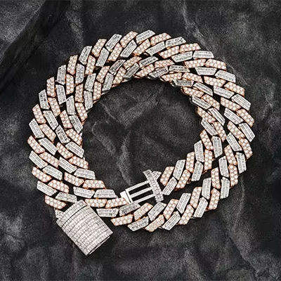 VVS Moissanite สร้อยคอชุบทองลายห่วงโซ่ผ่านเพชรแบบคิวบา