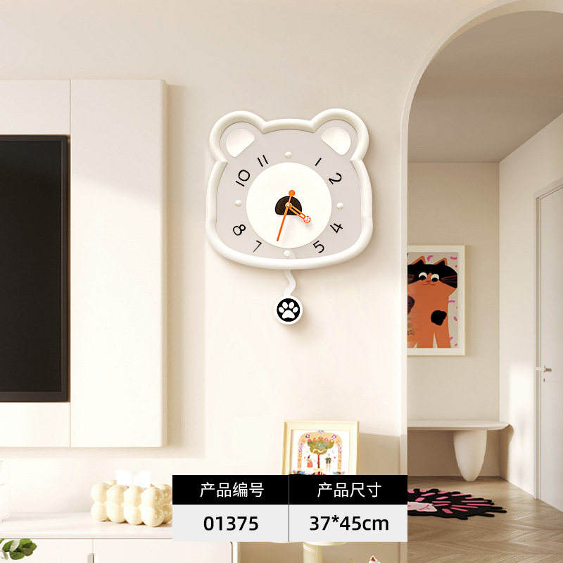 นาฬิกาติดผนังลายหมีน่ารัก สไตล์ครีม ขายดี เหมาะสำหรับตกแต่งห้องเด็กนักเรียน